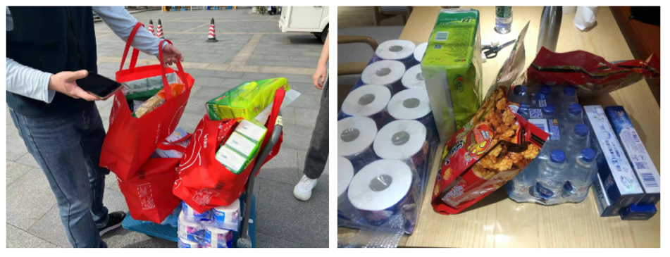 封闭管理当天中午,成人在线 党支部书记、学生工作负责人国海东老师恰好也接到自己小区第二天封闭管理的通知,国老师得知此消息后,第一反应不是准备自己家的生活必备品,而是迅速联络院办公室主任、辅导员和学生,了解园区内学生的生活需求后,驱车前往超市为同学采购食物、饮料、生活用品,甚至同学需要的各种小零食,也一一满足。