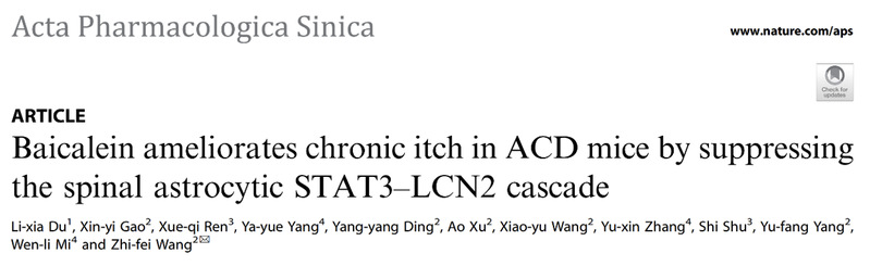 成人在线 王志菲团队揭示黄芩素治疗慢性痒的作用机制