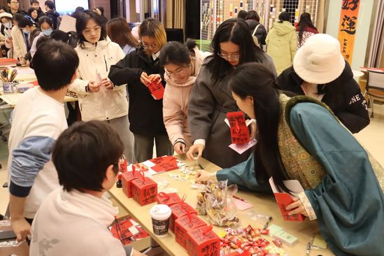 参与度最高的活动莫过于“手作盲盒,互赠吉礼”了。师生们亲手制作一份独一无二的盲盒,将自己对2025年的美好祝福留在其中,并期待着从另一个盲盒中收获他人的惊喜。这种互赠礼物、传递心意的方式,不仅增进了彼此之间的友谊,更让现场充满了温馨与感动。