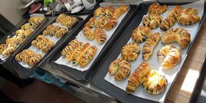 经过发酵和高温烘烤,新鲜出炉的面包,散发着诱人的香气,品尝着自己的劳动成果,大家的身心又一次得到了满足。