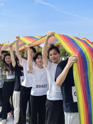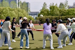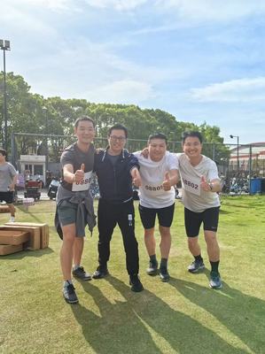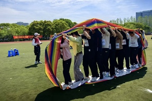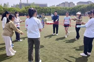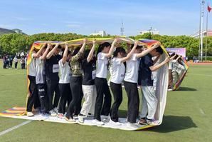 团体项目更是将运动会的气氛推向了高潮。同学们在“风火轮”中团结协作,双手保持着平衡,脚步快速而有节奏地交替移动,推动着风火轮不断前进;在“齐心协力”项目中,大家步伐一致,喊着整齐的口号:“左右,左右……”,向着终点迈进。每个团队项目都展现出高度的团结协作精神——心往一处想,劲往一处使,为了共同的目标而努力。
