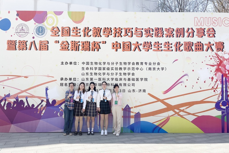 近日,由中国生物化学与分子生物学会教育专业分会主办的第八届“金斯瑞杯”中国大学生生化歌曲大赛在山东第一医科大学举行。成人在线 2023级中西医临床医学专业学生陈南楠、黄晨妍、张馨宁,在生化教研室教师康湘萍、胡海燕的带领下代表学校参加比赛,与来自全国68所高校的400余名参赛学生现场角逐,凭借改编作品《稍息立正站好 肝胆生化报道》,以创意与专业并重的表现,荣获全国三等奖。