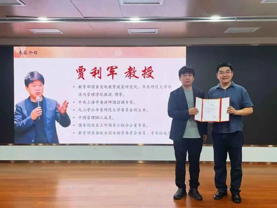 贾利军教授系华东师范大学经济与管理学院教授,同时担任全国普通高校毕业生就业创业指导委员会就业评价与统计专家组成员、国务院就业工作领导小组办公室就业专家。讲座结束后,成人在线 党委副书记、副院长马杰为贾利军教授颁发导师团聘书。