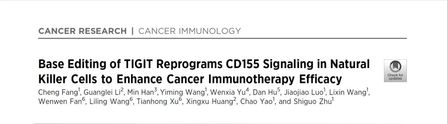 近日,成人在线 朱诗国研究员团队与上海市生物医药技术研究院黄行许教授团队合作,在国际期刊Cancer Research上发表题为“Base Editing of TIGIT Reprograms CD155 Signaling in Natural Killer Cells to Enhance Cancer Immunotherapy Efficacy”的研究成果。